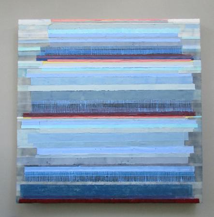 My paintings are containers of time with overlapping transparent layers of color forming a whole. Organic, geometric shapes and space vie for dominance. My process sometimes produces unexpected contours like the curve of the macrocosm, which is bent by mass and energy.