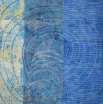 drawing on frottage and chine-colle' infused with encaustic on panel. 30x30x2in